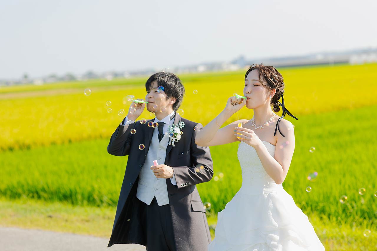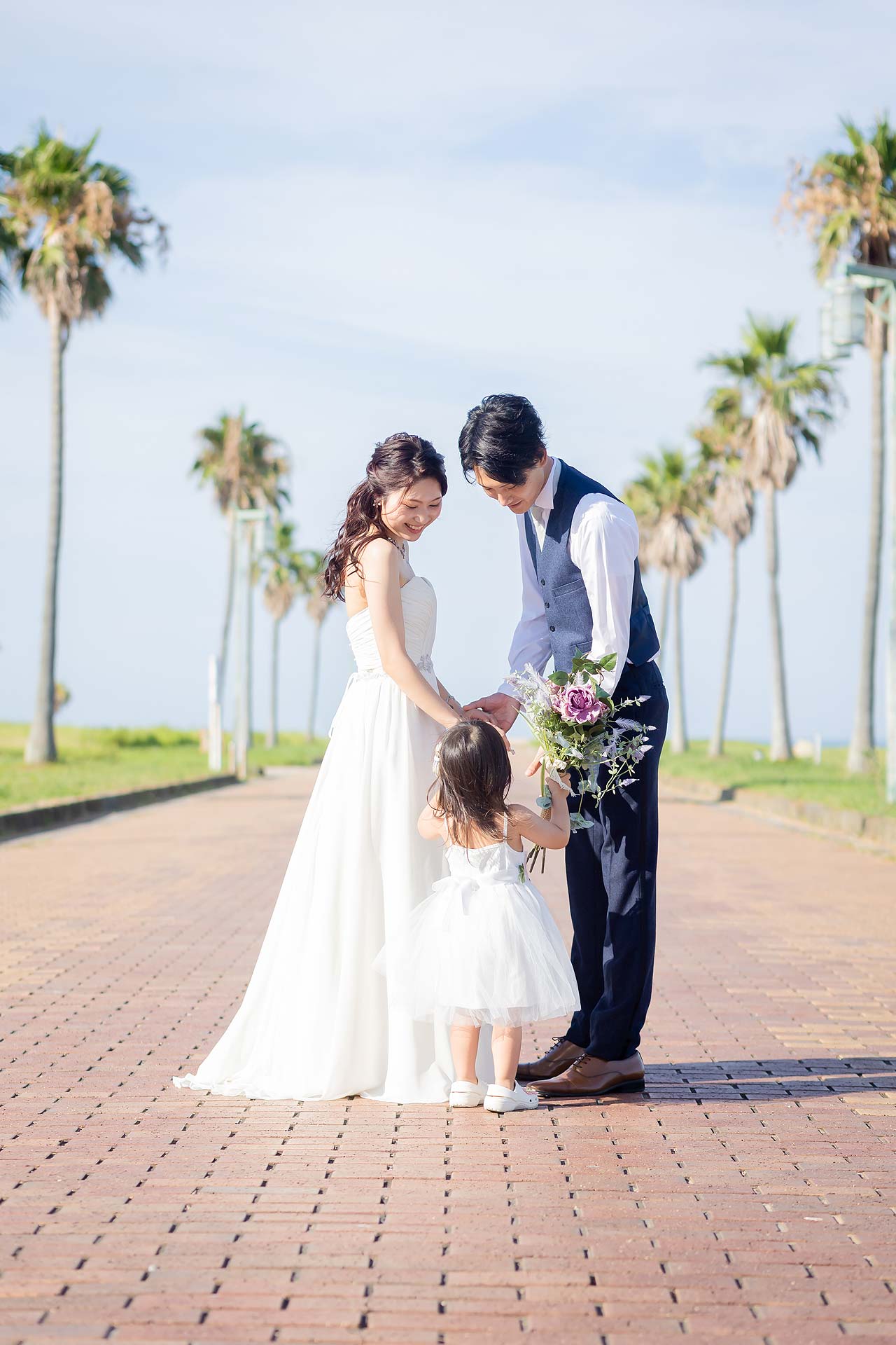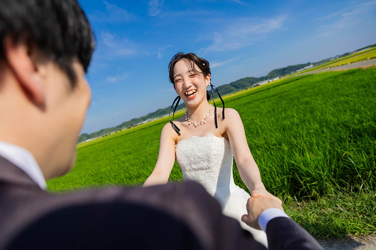 開放感あふれる屋外での撮影は、自然とリラックスした表情が生まれます。
